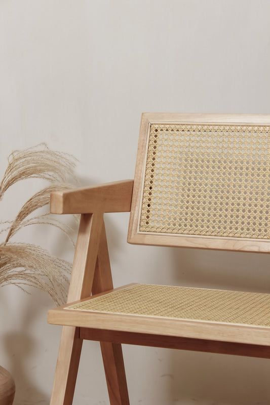 stoel Pierre Jeanneret blank eiken kleur + rotan, hoge kwaliteit
